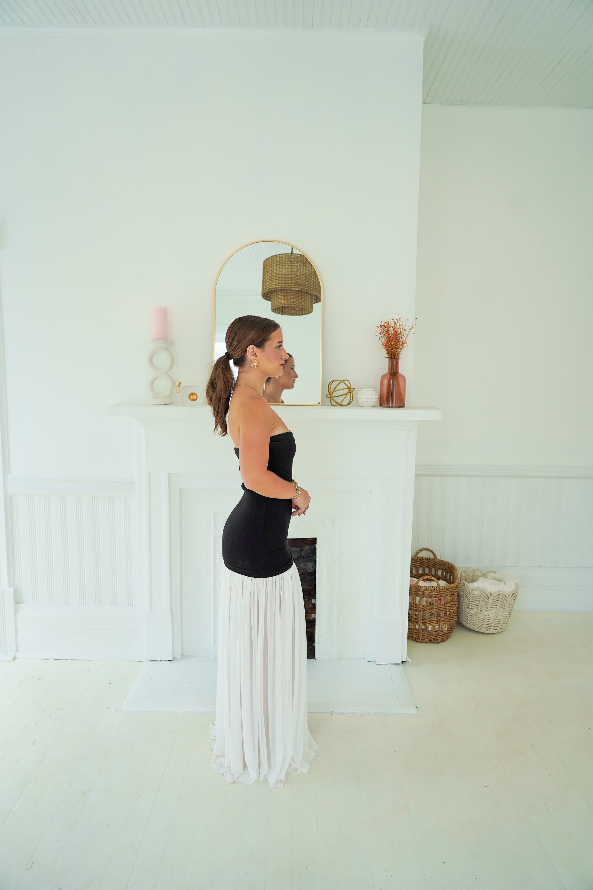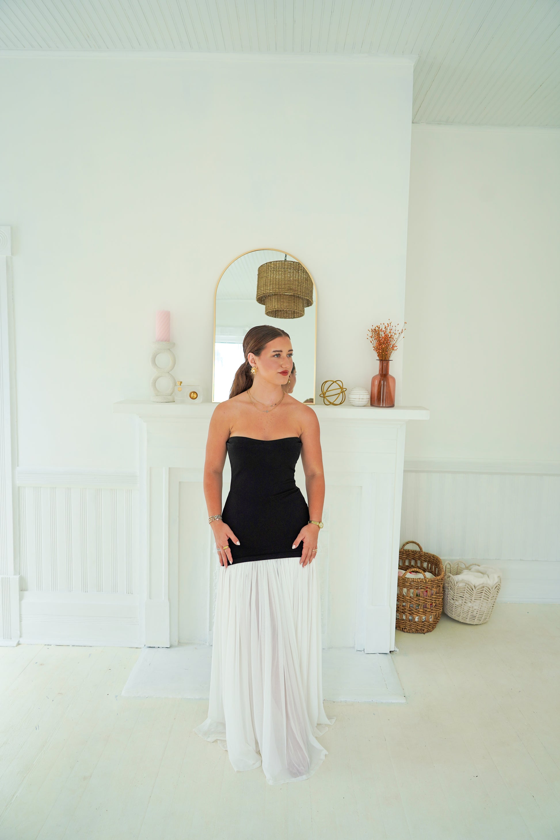 The Black & Blanche Formal Dress is the definition of timeless elegance. With a sleek, form-fitting black bodice and a flowing white tulle-inspired skirt, this piece creates a striking silhouette that’s both classic and modern. Perfect for formal events, elevated evenings out, or any occasion that calls for sophistication, it’s a dress designed to turn heads while keeping you effortlessly chic.